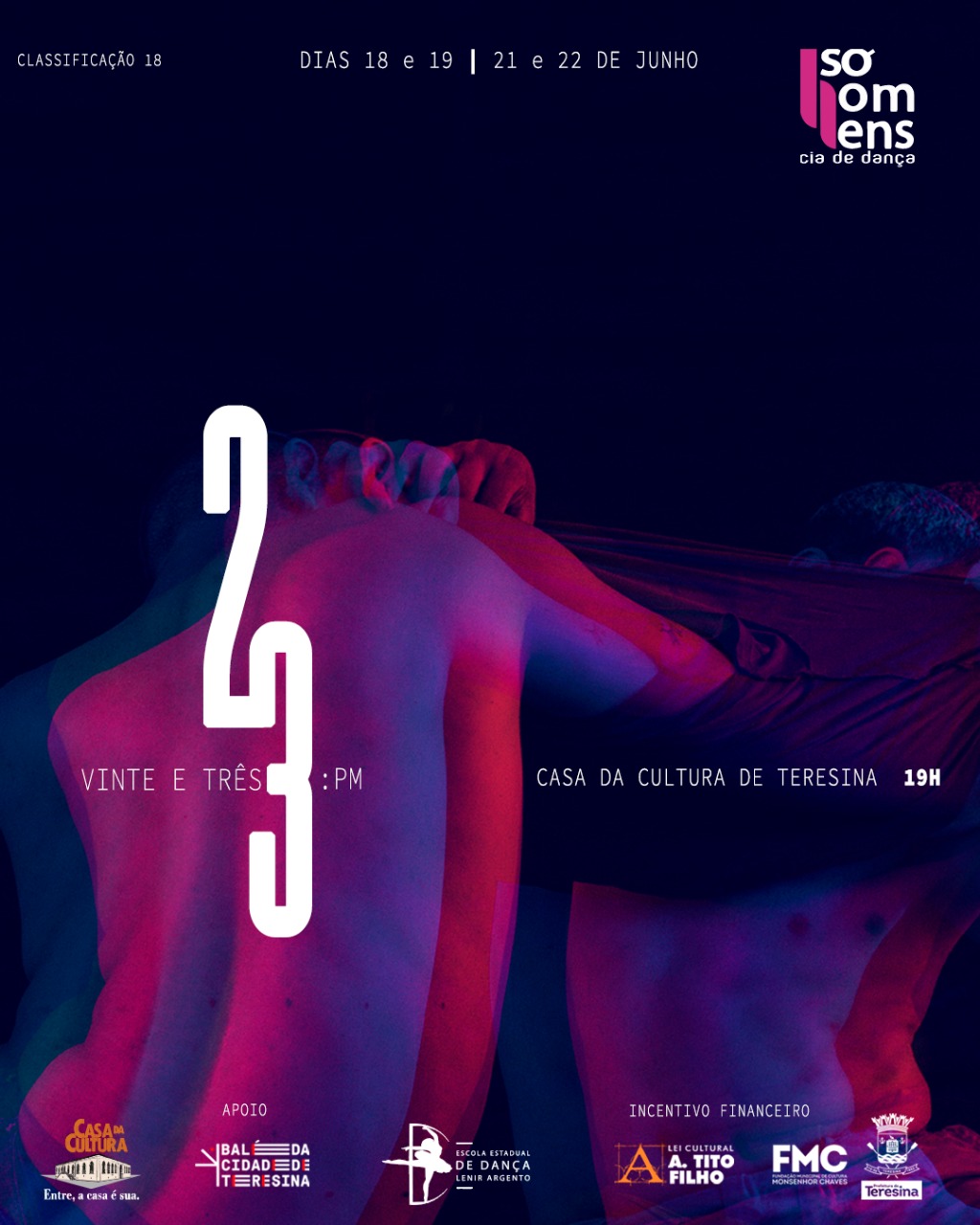 23:PM é uma criação de José Nascimento e Felipe Rodrigues. O espetáculo transita por situ(ações) reconhecíveis no corpo ao propor simples gestos que discutem os próprios desejos da “relação”… É um lugar de “quases” – quase meia noite, quase um fixar de imagens. É uma dança que acontece no entrelaçar dos corpos que especulam outros quases, e que propõe o fluxo das situações instaladas na dramaturgia da “relação” em cena. É atração que vira luta. É ato que revela – vontade, desejo, prazer. É movimento constante, o movimento que é a própria dança, a própria ”relação”. Se liga nisso que é importante: nessa dança, se olhar de baixo é sentido e se olhar de cima você é inserido.