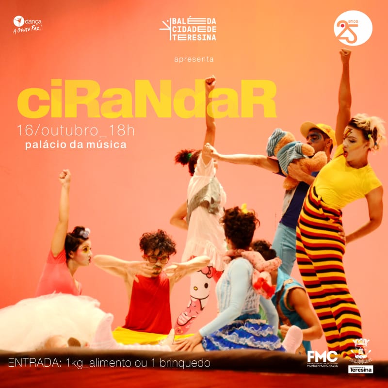 Balé da Cidade de Teresina trás nesta terça-feira, 16 de outubro, no Palácio da Música o espetáculo “ciRaNdaR”, às 18hrs. A entrada é 1kg de alimento ou um brinquedo.