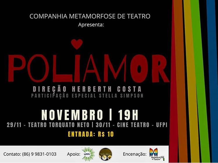 Espetáculo teatral dirigido por Herberth Costa, autor e diretor de Faces, Quarto de Brinquedos, Mocreias, Mistério da Mata, A arca do Zé, entre outras. “Poliamor” apresenta as relações humanas em diferentes ângulos, cores e formas.