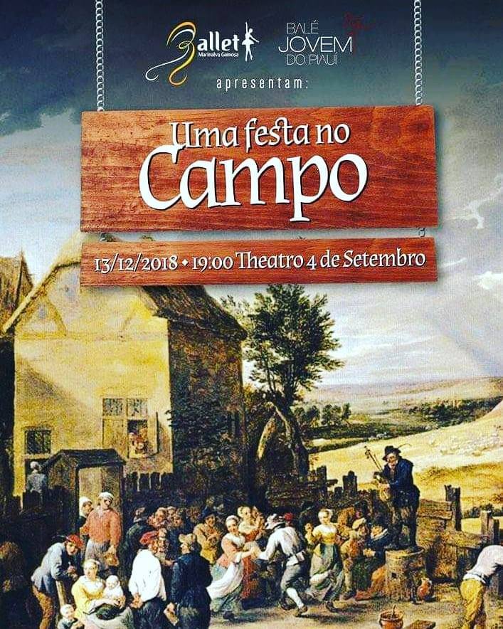 Nesta quinta, 13 de dezembro, a partir das 19 hrs, no Theatro 4 de Setembro, terá o espetáculo “Uma Festa no Campo” da cia de Ballet Marinalva Gamosa & Balé Jovem do Piauí.