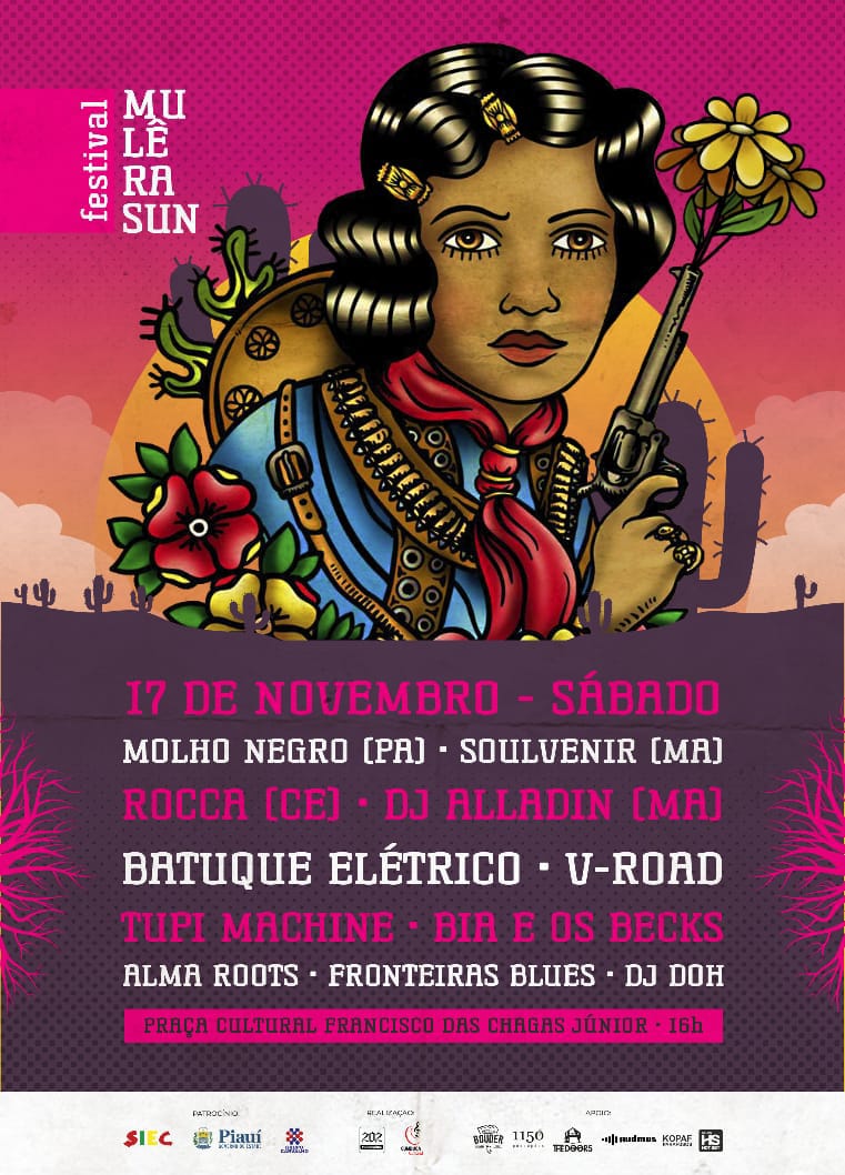Nesse cenário de resistência, Teresina fica prenha e gera a sua nova cria: ESTIVAL MULÊRA SUN. Uma pluralidade sonora conectando o norte e o nordeste deste país miscigenado, misturado por inteiro, diversificado ideologicamente e que clama por respeito. No dia 17/11 às margens do Rio Poty, o Piauí canta suas tribos e se conecta com os estados do Pará, Ceará e Maranhão para celebrar a música e toda a sua diversidade. Venha fazer parte dessa história! Entrada 1kg de alimento não perecível.