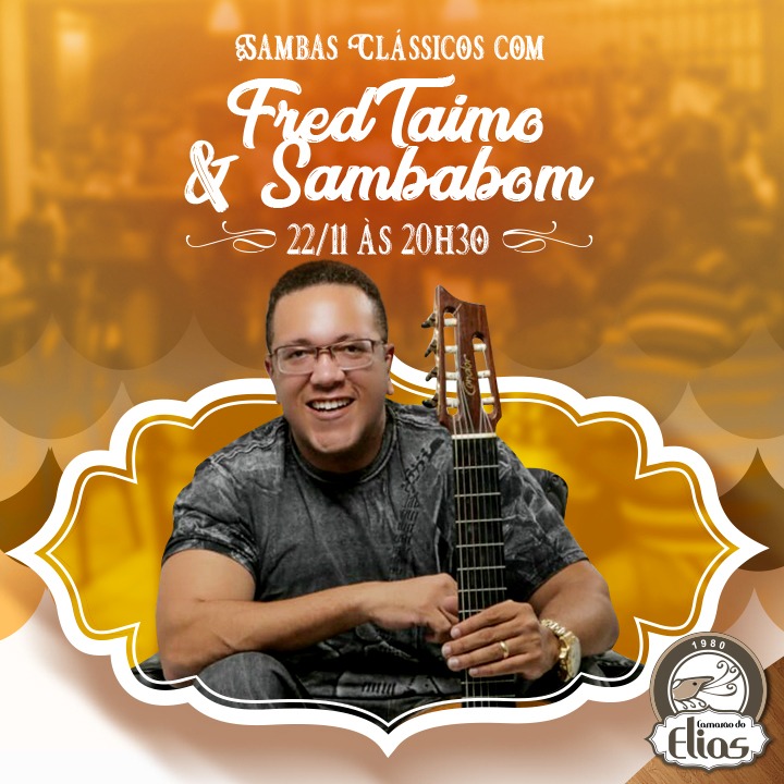 Nesta quinta (22) de novembro, no Camarão do Elias terá Fred Taimo e Sambatom, a partir das 20h30. Não fique de fora dessa!!!