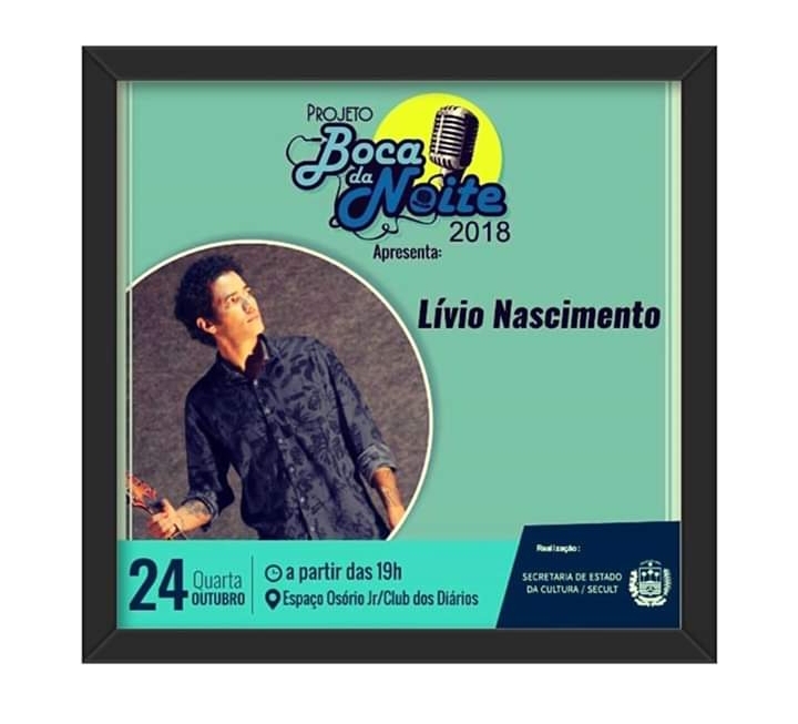 Hoje, 24 de outubro no Projeto Boca da Noite, no Clube dos Diários, Lívio Nascimento apresenta-se a partir das 19hrs, com show Lançamento CD “Janeiro”.