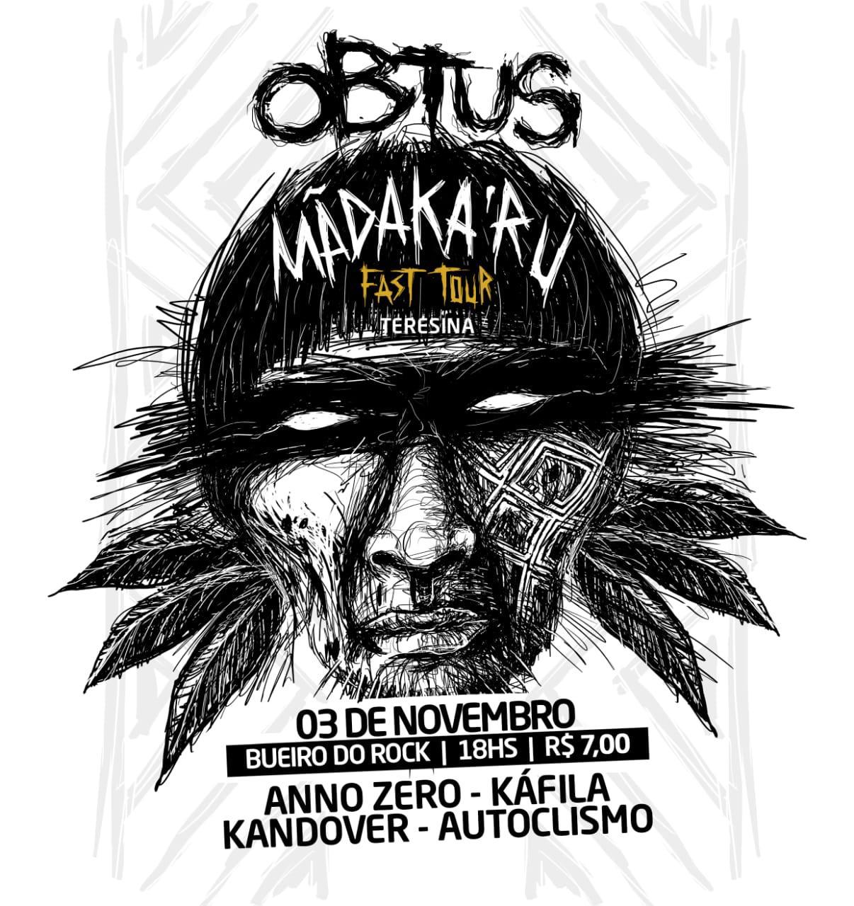 MÃDAKA’RU Fast Tour – Teresina, ocorrerá no Bueiro do Rock, dia 03 de novembro com as bandas: Obtus, Anno Zero, Káfila, KandoveR, Escrotos e Autoclismo, a partir das 18hrs. Não fique de fora dessa!!