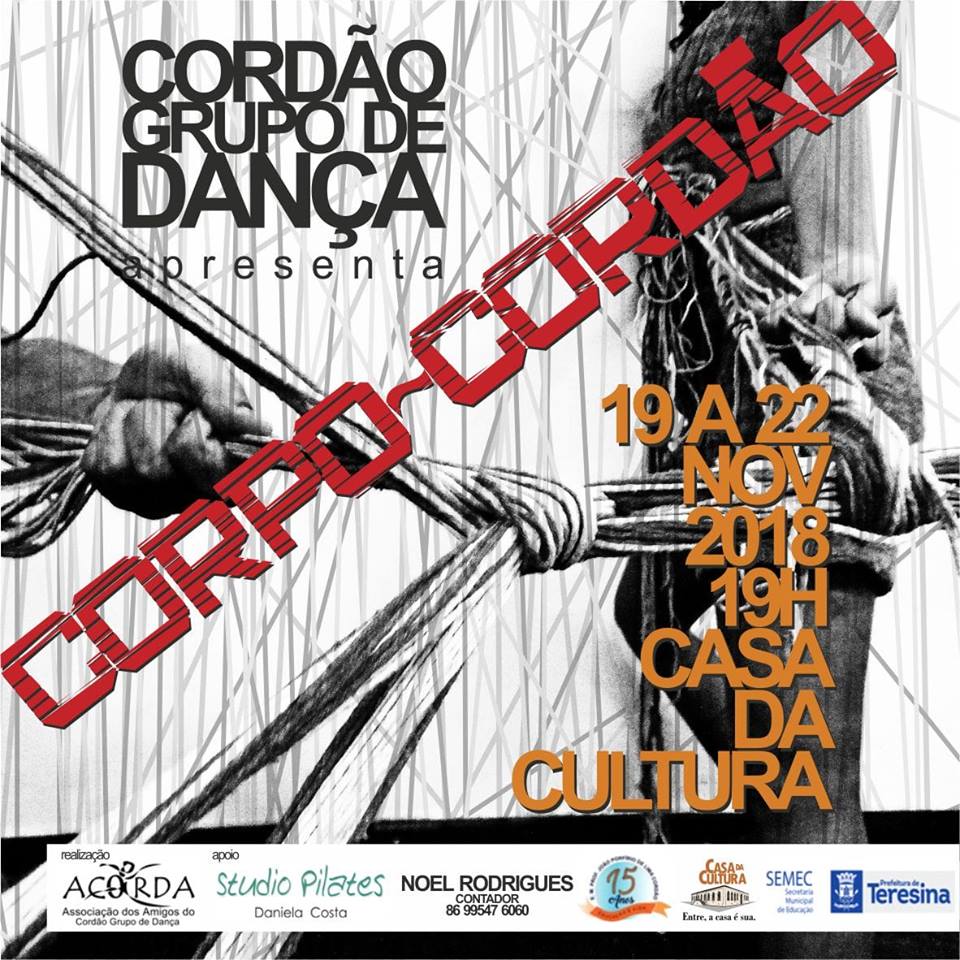Cordão Grupo de Dança apresenta o espetáculo “Corpo-Cordão”, no 22 de novembro na Casa da Cultura, a partir das 19hrs. Não fique fora dessa !!!
