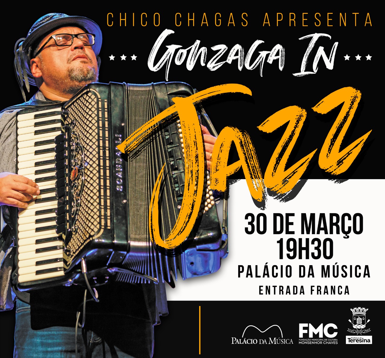 Chico Chagas retorna a Teresina com o show Gonzaga in Jazz. Em sua segunda visita por terras teresinenses, o acordeonista, pianista, baixista, compositor e arranjador, apresenta o show “Gonzaga in Jazz” no Palácio da Música, às 19h30 do dia 30 de março, com entrada franca. O show foi criado em 2012, em homenagem aos 100 anos de Luiz Gonzaga, e será apresentado pela primeira vez no Piauí.