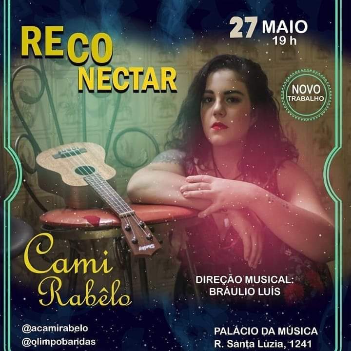 O show RECONECTAR é o novo trabalho da compositora, cantora e instrumentista Cami Rabêlo e direção musical de Braulio Luís. Será às 19hrs, no Palácio da Música, nesta segunda-feira (27/05)
