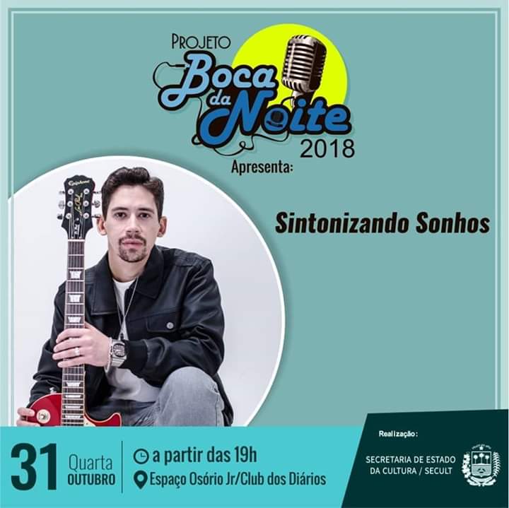 Hoje, 31 de outubro o Projeto Boca da Noite trás aos palcos do Clube dos Diários a partir das 19hrs “Sintonizando Sonhos”. Não fique de fora dessa!