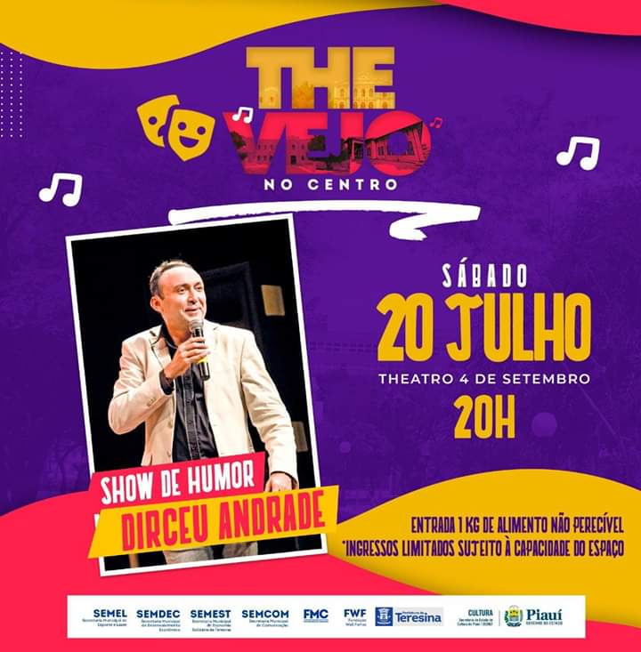 Dia 20 de julho acontece a 2° edição do The Vejo no Centro, o evento trás uma programação com shows, city tour em prédios históricos e exposições pra toda a família. Entrada 1kg de alimento não perecível. Não fique de fora dessa!!!