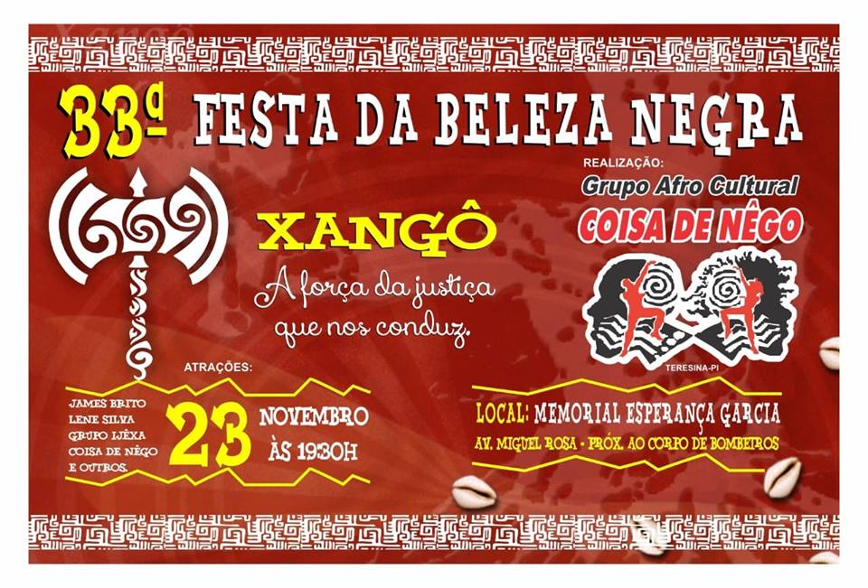 Dia 23 de novembro, a partir das 19h30, no Memorial Esperança Garcia, terá o XXXIII Festa da Beleza Negra. Não fique de fora dessa!!