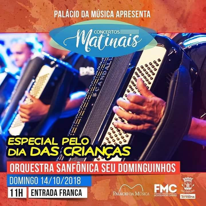 Palácio da Música Rua Santa Luzia, nº 1241 - Centro Sul, TeresinaNeste domingo, 14 de outubro, no Palácio da Música, às 11hrs, teremos o som da Orquestra Sanfônica Seu Dominguinhos.…
